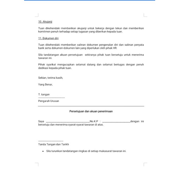 Penamatan kerja sepanjang tempoh perkhidmatan ini, kedua dua pihak boleh. Contoh offer letter kerja bahasa melayu afiit.